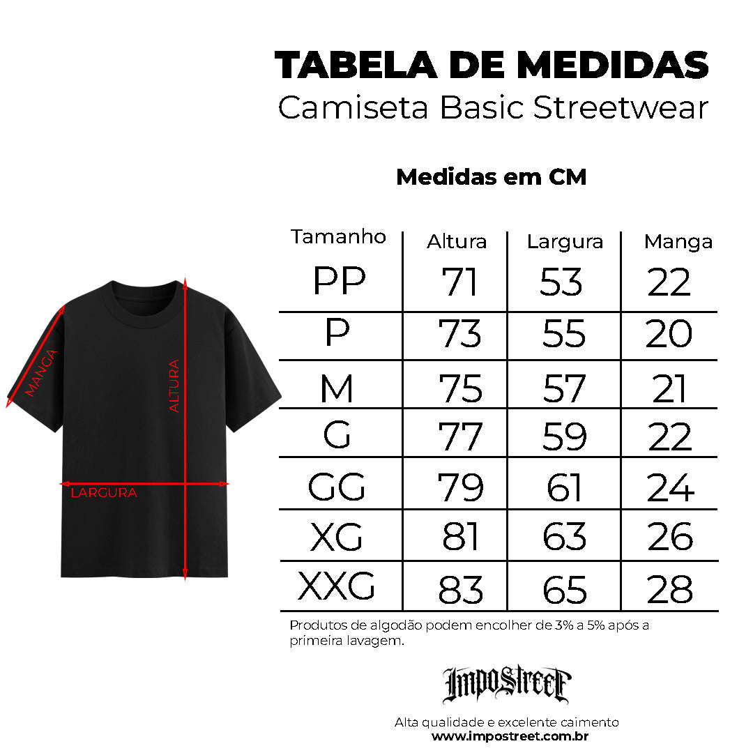 A Camiseta Basic Street Logo Play The Game da Impostreet é a escolha ideal para quem procura uma peça versátil, com visual urbano e ótimo custo-benefício. Projetada para entregar conforto e estilo, ela traz uma modelagem equilibrada: está entre a camiseta oversized e a tradicional, oferecendo um caimento mais solto sem exageros, ideal para compor looks streetwear com praticidade e atitude.